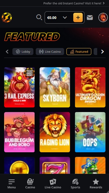 In addition to the inviting slots, live, and table games sections, Instant Casino offers a good sports betting selection, including football, basketball, tennis, cricket, ice hockey, and other sports. This casino keeps sport enthusiasts informed on the latest score updates and world league matches and events.