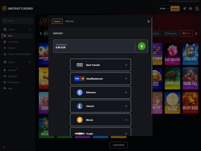 Let’s also mention that Instant Casino is a crypto-friendly website that hosts top-rated casino games of various genres, including live-dealer games and categories such as roulette, blackjack, baccarat, poker, game shows, and more. A loyalty plan is included, as well as attractive promo deals and tournaments.