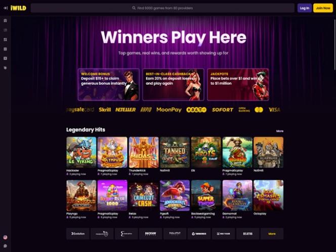 This operator offers more than 6000 online casino games including slot machines, Live Casino, Table Games and more. iWild gambling site is partnering with some of the best gaming software companies in the iGaming industry: Microgaming, NetEnt, Evolution Gaming, Betsoft...