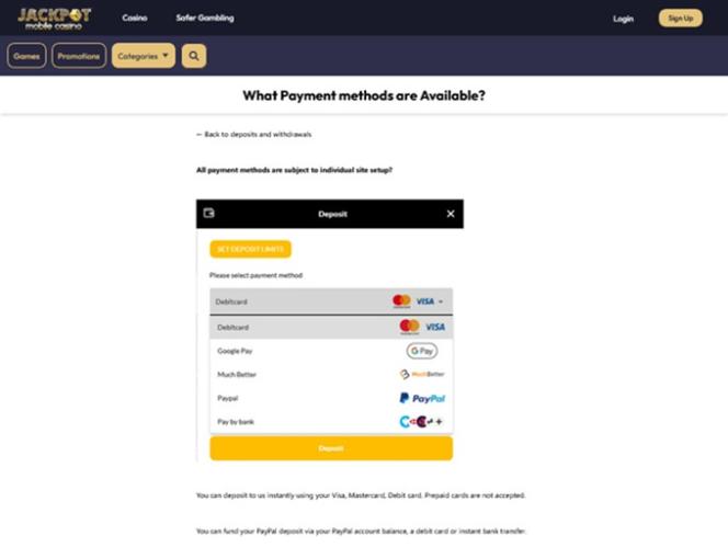 There are a large selection of video slots to play at Jackpot Mobile Casino, and the casino also has a selection of Net Ent's progressive jackpots, which feature huge cash prizes that can instantly make you a millionaire.