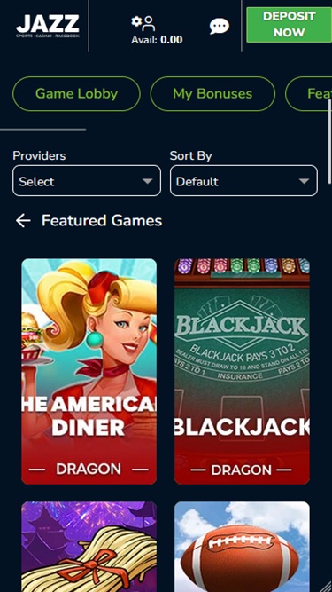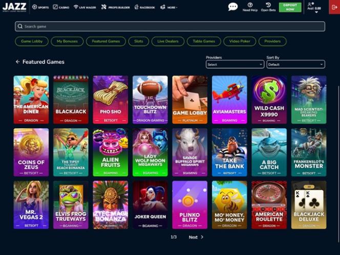 Jazz Casino and Sportsbook is powered by Net Entertainment, BetSoft, Big Time Gaming, Evolution Gaming, Ezugi, Habanero Systems, playson, Thunderkick, Endorphina, Wazdan, Booming Games, Pragmatic Play, Nolimit City, Red Tiger Gaming, Spinomenal, Felix Gaming, Revolver Gaming, BGAMING, Evoplay, OneTouch, Pocket Games Soft, Mancala Gaming, Caleta Gaming, Tom Horn Gaming, Wager Gaming, Iron Dog Studio, Zitro, Wild Streak Gaming, Vibra Gaming, Hacksaw Gaming, Dragon Gaming, Dragoon Soft, Bombay Live, Aviatrix, 3 Oaks Gaming, Spribe, 5Men Gaming and Reel Kingdom, and the games are supplied through a web-based instant play platform that loads up through your favorite internet browser. The site also has mobile compatibility, letting you wager via your smartphone or tablet.