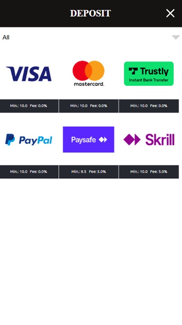 💰 Min Deposit€9.5 (Paysafe)/€10 (Other methods)