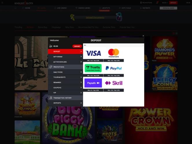 Cryptocurrency transactions are not going to be present at KnightSlots Casino, and that might be a bummer for a lot of people since these types of payments have become a lot more prevalent in the last few years. Be that as it may, there are plenty of very popular banking options for players such as Visa, Mastercard, Astropay, Neteller, Skrill, Paypal, and others.