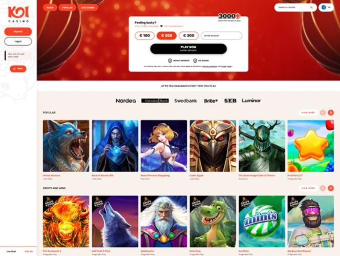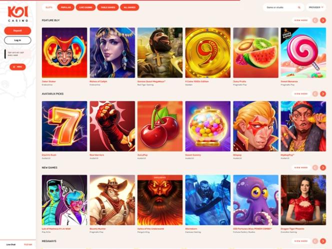 The Online Slot games section is the number-one section at Koi Casino. It brings a lot of popular themes with entertaining features, various reel setups and inviting reward systems.
