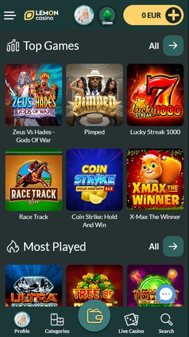 Even though, at first sight, the casino’s design and interface seem a bit outdated, Lemon provides modern online casino features to players, such as cryptocurrency-friendly banking options and mobile optimization… This gambling place offers a flawlessly responsive platform so punters that enjoy playing casino games on the go will find it appealing.