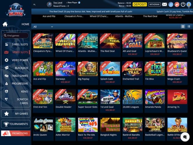 Most of Liberty Slots’ gaming library is composed of slot machines, which run the gamut from traditional 3-reel games all the way up to modern 5 reel games that incorporate a series of entertaining features. These games are complimented by a few progressive jackpots that can pay out big wins if players hit the winning combination.