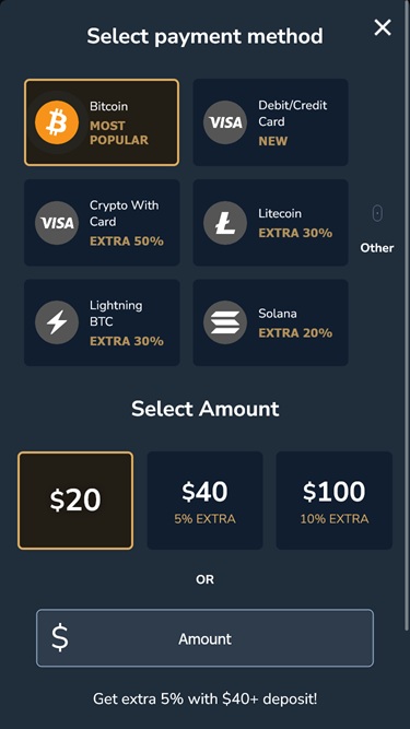 💰 Min Deposit$10 (Crypto)/ $15 (Bitcoin)/ $30 (Credit Cards)