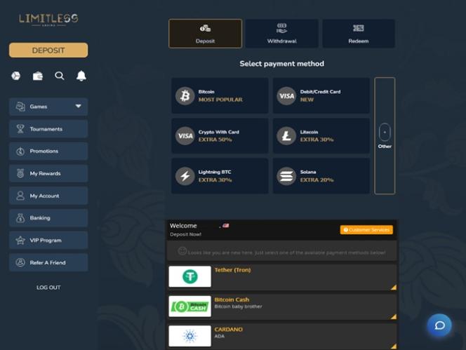 Limitless Casino is a small USA friendly gaming brand but the crypto payment options available at this site are many and quite impressive.