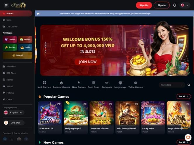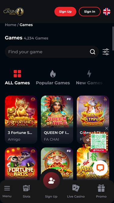 Live Casino House is powered by Evolution Gaming, Habanero Systems, Play'n GO, Relax Gaming, WM, Pragmatic Play, Nolimit City, Booongo, Fantasma Games, Spadegaming, Evoplay, SA Gaming, Pocket Games Soft, Mancala Gaming, SmartSoft Gaming, Eurasian Gaming, Blueprint Gaming, Reel Time Gaming, BF Games, Wild Streak Gaming, Hacksaw Gaming, Gamzix, Slotmill, FastSpin, Lucksome Gaming, Dragoon Soft, Aviatrix, Dream Gaming, 3 Oaks Gaming, Amigo Gaming, AE Sexy, Spribe, Jili and Reel Kingdom and the casino’s games are supplied through a web-based browser, rather than requiring players to download cumbersome software. There is a mobile-first take on the site’s design, but you can also play on your desktop or laptop with no issues.