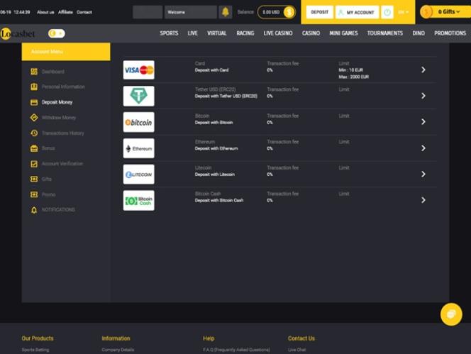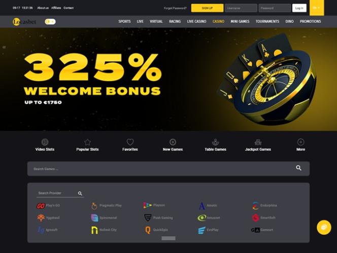 Locasbet includes Sports, Live, Virtual, Racing, Live Casino, Casino, Mini Games, Tournaments, Dino, and Promotions sections, so gamblers will have the opportunity to try out various game types and casino genres, redeem different types of notable bonuses, and more.