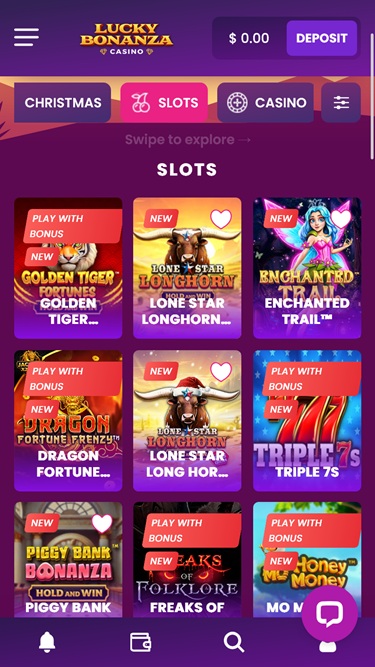 Let’s check out the promotional section at Lucky Bonanza! Here, players will find a variety of inviting incentives designed to boost their winning odds and gambling experience.