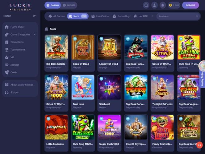 Lucky Friends Casino is no different, and players here will have access to thousands of exciting games to choose from. This gambling site has secured licenses from over 90 unique software developers, which is a substantial number. The library is diverse and features a wide range of themes, mechanics, and features.
