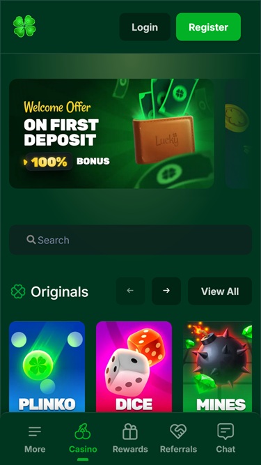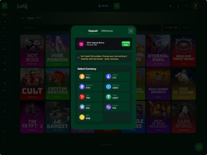 New Customer Offer. T&C’s Apply. 18+. This offer is not available for players residing in Ontario. New Customer Offer. T&C’s Apply. 19+. Play Responsibly. Minimum deposit: $10 or crypto equivalent. Max Cashout: 25,000 LCK (≈ $25,000).