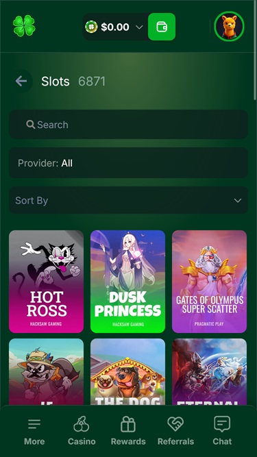 In terms of visual appearance, the website is primarily green, which is appropriate given that a four-leaf clover is the brand’s signature symbol. Players will have no issues navigating the environment, as the user interface is incredibly intuitive and easy to grasp, while the lack of bloat and unnecessary effects enables quick loading times, even on slower internet speeds.