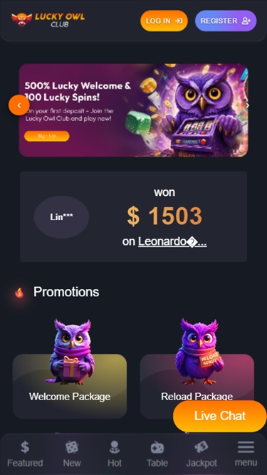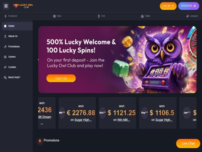 In case you decide to step into the world of the Lucky Owl Club and become a part of its community, you can count on a plethora of exciting promotions and inviting bonuses.