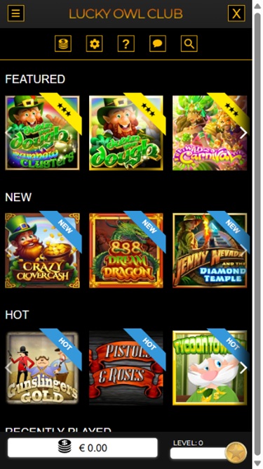 Lucky Owl Club Casino does not support a live dealer section, but this does not mean that players will not be able to experience highly dynamic, interactive content by playing other casino game genres and game types available on this website.