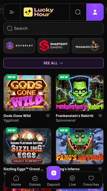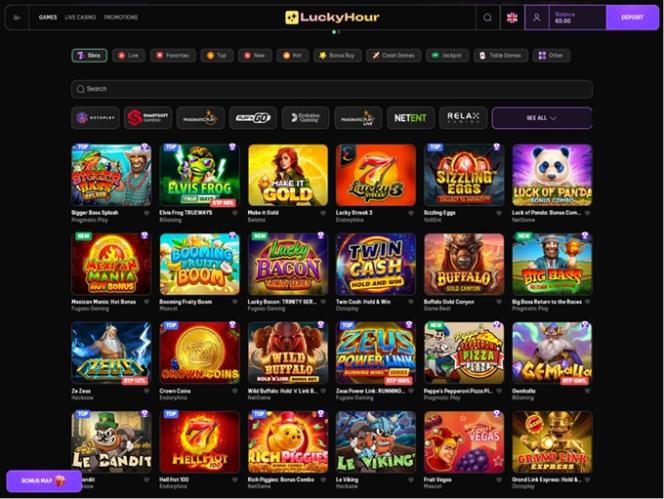 LuckyHour collaborates with well-known casino software brands such as Play'n GO, Quickspin, Relax Gaming, Yggdrasil, Endorphina, Wazdan, and other companies.