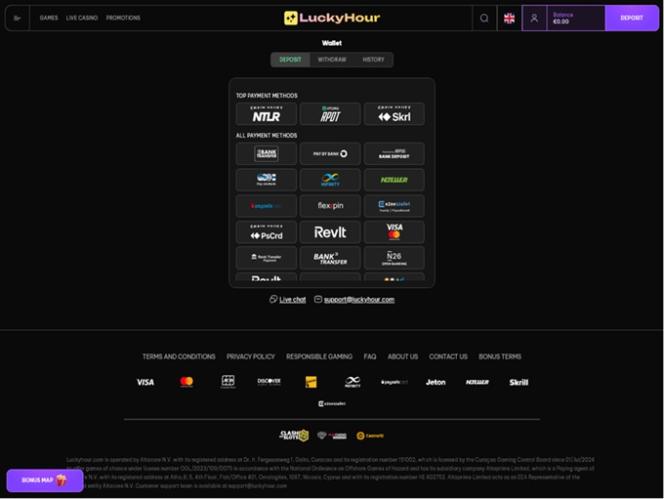 LuckyHour Casino is an online casino established under the laws of Curacao, licensed and regulated by the Curacao Gaming Control Board. Players from Canada, New Zealand, Germany, Austria and Switzerland are the primary customers of this casino platform, but players from other jurisdictions should stay tuned as well, as they are more than welcome to join this brand. The website is localized in Greek, English, French, and Italian, and it’s so well-organized and user-friendly that it absolutely charmed us at first glance.