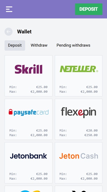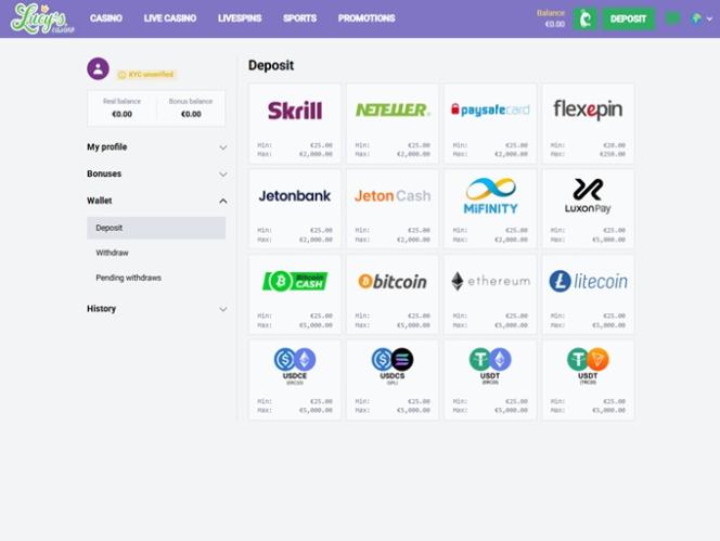 The casino’s Cashier is country dependent but no matter what jurisdiction you belong to, you will be able to choose from a plethora of available payment methods including popular cryptocurrencies and crypto wallets:
