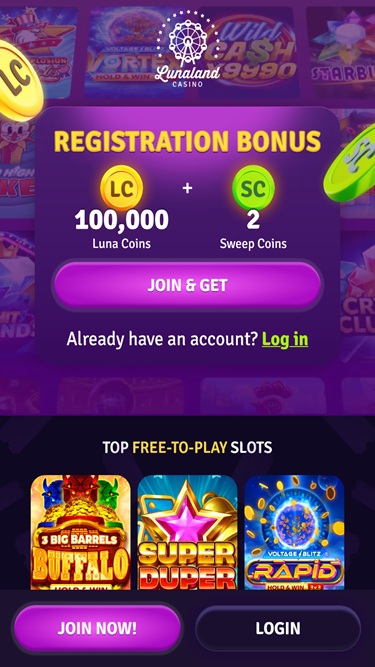 As you would expect from a modern sweepstakes casino, LunaLand features an impressive lineup of promotions and bonuses for its players to enjoy. First and foremost, every new account will be eligible to claim a hefty welcome package comprising a free batch of Sweeps Coins and Luna Coins.