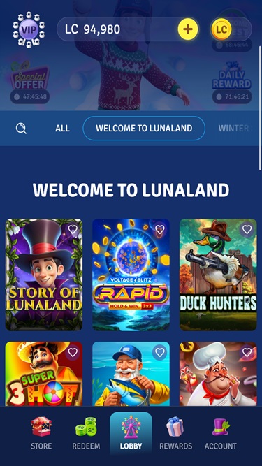 With its entrance on the scene in 2025, LunaLand Casino aims to offer a comprehensive social casino experience by featuring an impressive selection of casino-style online slots for its players to play. The brand invites players from the United States to join in on the fun, play all the games, and enjoy all the available promotions and bonuses.