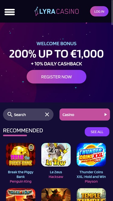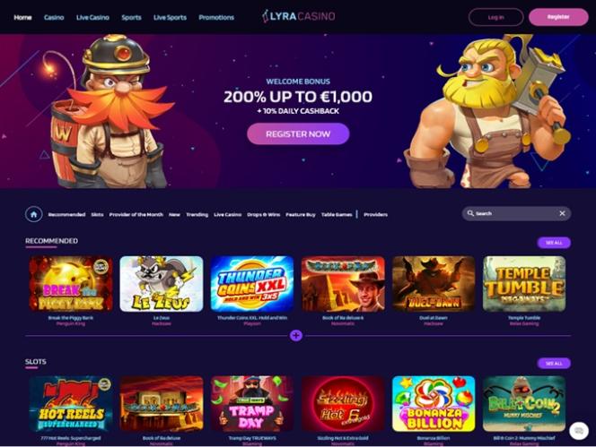LyraCasino is quite straightforward when it comes to games. The games are front and center and everything is about the gaming library.