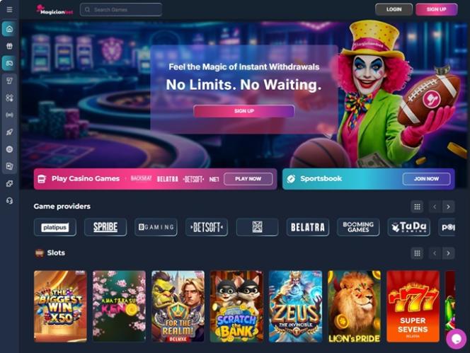 Here are some of the titles that you can find at MagicianBet: Mines, Goal, Limbo, Jumper, Crash, RedJet, Crash, Red Baron, Fly On!, Crash, Red Baron 2, Splash, Falling Coins, Cashybara Ski Edition, Cashybara Boxing Edition, Caramelo Sortudo Crash Edition, Cash Balloon, Smash X, Mine Island, Avia Star, JetX, Helicopter X, Football X, Cricketer X, Cricket X, Duel X, Chicken Highway, Cheesy Road Classic, Bottle Mania, PumpedX, Rider, Jewel Clicker, Cricket Boom, CrashX Football Edition, Chicken Roulette, Balloon, Aero, Space Robot, Goal Crash America, Goal Crash, Beby Gana, Mines Grand, Mines Gold, Go Rush, Touchdown, Crash Puck, Crash Goal, Crash Fruit, Crash Bonus, Color Prediction, Chicken Dash, Cash Stack, Aviator, Trader, Pilot Chicken, etc.
