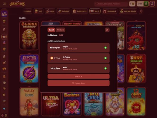 Magius Casino offers a wide variety of bonuses, including cashback, extra spins, and special live dealer promotions. New players are greeted with open arms and a considerable welcome package, while existing customers can take advantage of various reload deals and Bonus Crab, as well as exciting challenges and tournaments.