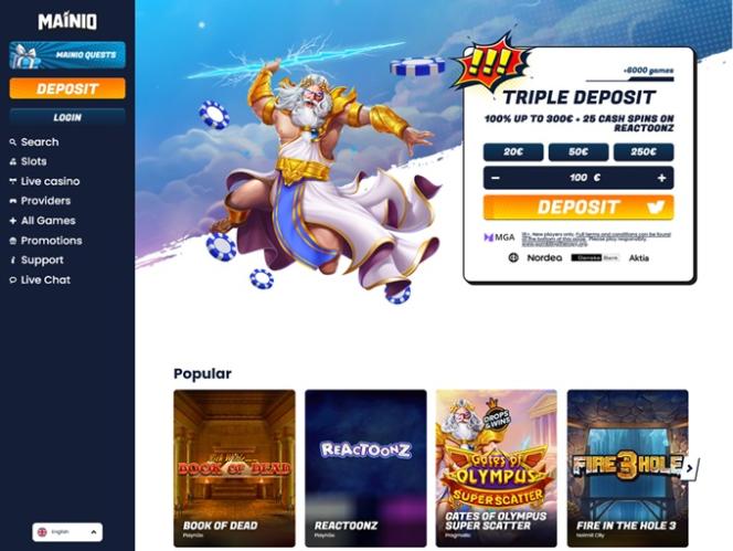Launched in 2025, Mainiokasino is an online casino with a strong focus on offering players a diverse and expansive selection of casino games they can play throughout their stay, including thousands of online slots, live dealers, table games, and instant crash games. The brand primarily accepts players from Finland and invites them to enjoy all the games, promotions, and bonuses.