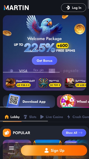 Additionally, Martin Casino also features a separate page dedicated to instant crash games like Aviamasters, Plinko 2 Multiplier Madness, Mines Dare2Win, Gift X, JetX, Mines, Balloon Mania, Fishing Club, Vortex, Tap the Pot, Crystal Poker, Chicken Road, Mummy’s Mines, and Aviator.