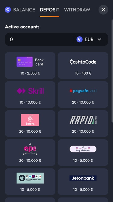 When withdrawing or depositing above specific amounts, players may need to complete KYC procedures.