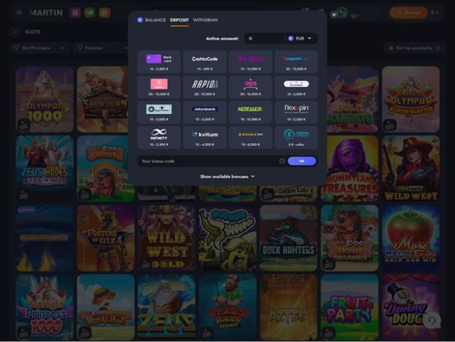 Martin Casino is a massive online gambling site that focuses on providing its players with an abundance of fantastic games to browse through, including real-money slots, live dealers, table games, and crash games, as well as sports betting options. The brand accepts players from Germany, Austria, Switzerland, and Finland, allowing them to explore an enormous gaming catalog and a rewarding promotional plan with bonuses.