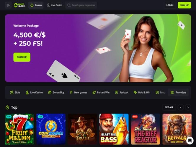 MateSlots is a massive online casino that primarily welcomes players from Australia and invites them to join the fun by playing thousands of casino games, including real-money slots, live dealer games, table games, and instant crash games. The brand is also widely known for its extensive promotional plan, featuring bonuses, loyalty rewards, tournaments, lotteries, and more.
