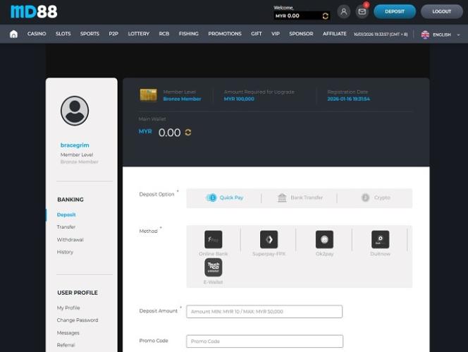 MD88 Casino is not licensed or regulated by any regulatory authority.