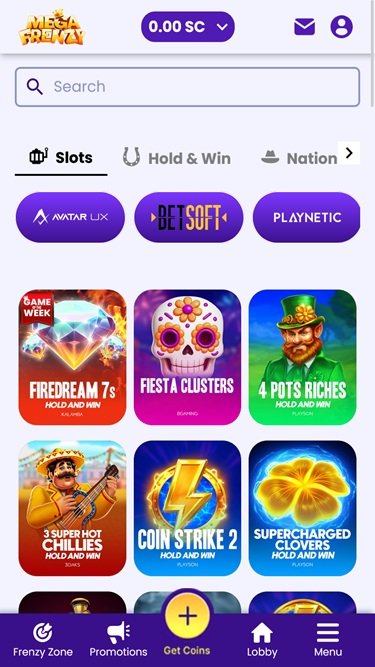 Generally speaking, most modern sweepstakes casino players prefer playing on their smartphones or tablets, which is why Mega Frenzy Casino optimized the entire website for mobile gaming. Everything runs smoothly through mobile browsers, so all you need to do is log in and start playing.