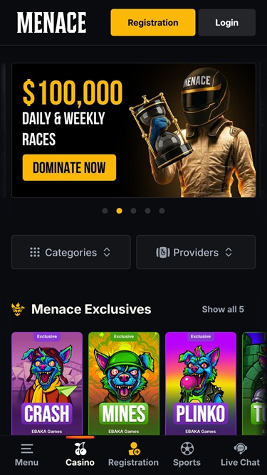 The registration process at Menace King will be simple and quick, after which you can expect fast payment transactions, a welcome casino package, 24/7 support, VIP rewards and other bonuses and goodies. All this was more than enough for an excellent first impression so we are just about to explore the casino offerings in more detail, and we invite you to stay tuned!