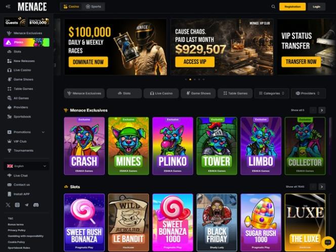 Menace King is an online casino and sportsbook operator that is mainly oriented towards casino players based in the UK, Canada, New Zealand, India, Indonesia, Germany and the USA. Note that at the time of our visit and writing this casino review this website operated without a gambling license.