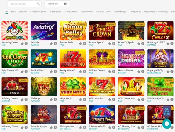 Some of the recommended titles are: Age of the Gods Apollo Power, Amazing Joker, Aviatrix, Bonus Bells, Bonus Epic Crown, Book Of Spells, Burning Chilli X, Epic Clover 100, Fruit Million, Fruity Win 40, Golden Crown, Hearts Desire, POP Panther Pays Power Play, POP Sharks Blitz, Royalty Of Olympus, Shining Crown, Tiki Pop, Very Hot 5, Wild Hot 40, Wild Joker Hot, Wild Lucky Clover, Winning Clover 5 Extreme, Zombie Apopalypse, and more.
