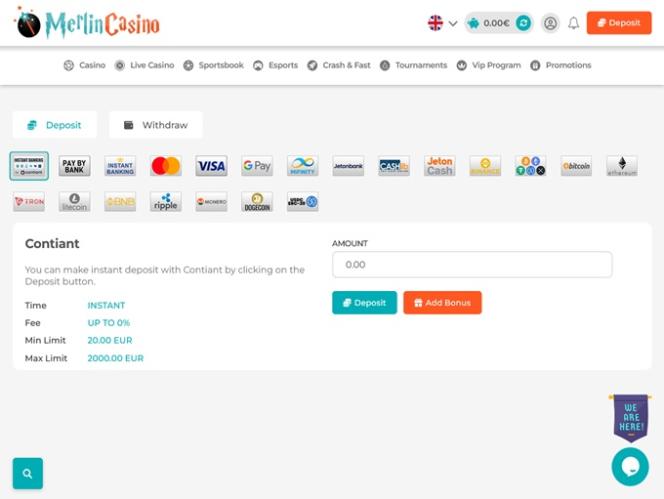 To make payments at Merlin Casino, you can choose traditional payment options such as bank wire transfers, credit and debit cards, as well as e-wallets like Neteller, Skrill, Revolut, Google Pay, Apple Pay, and numerous other online payment systems. Cryptocurrency payment options are also available. Supported fiat and crypto currencies include Brazilian Real, Bitcoin, Canadian Dollars, Dogecoin, Ethereum, Euro, Litecoin, Tron, Turkish Lira, US Dollars, USD Coin, Monero, Ripple, and more.