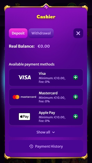 The platform offers numerous banking methods for both deposits and withdrawals, including Apple Pay, bank wire transfers, Bitcoin, Bitcoin Cash, and more than twenty additional payment choices.