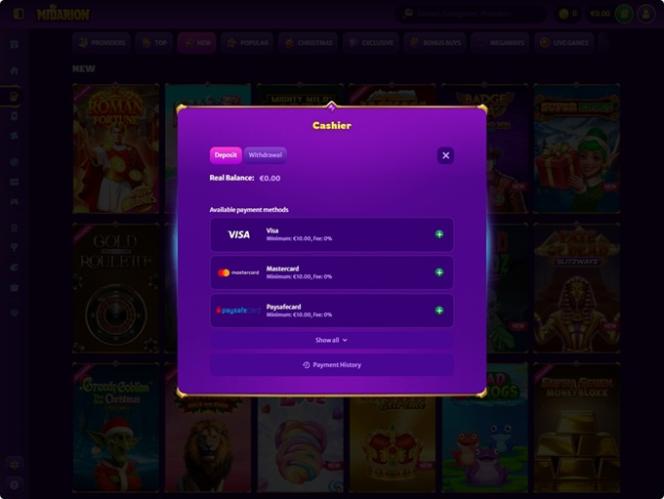 BetSoft, Big Time Gaming, Evolution Gaming, Ezugi, Habanero Systems, Microgaming, Playtech, Quickspin, Relax Gaming are just some of the names this operator collaborates with. The casino’s massive gaming collection will satisfy both experienced players as well as new gamblers that are just discovering the world of online gambling. The possibilities at Midarion are simply said - endless, so count on long hours of entertainment.