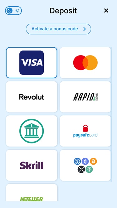 If topping up the account with credit/debit card the funds will be credited only when the casino receives an approval and code from the payment institution
