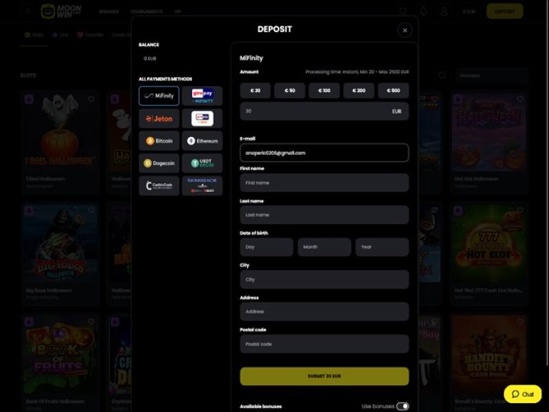 Moon Win is decent overall. Took the free spins bonus, won a few dollars then went on to play a couple of their new slots, like the Fruit Machine with multiple lines. Sadly didn't win the moon, but had fun nonetheless. Site's layout feels like most other casinos that offer slots from multiple providers. Everything was functional and loading rapidly when I was there.