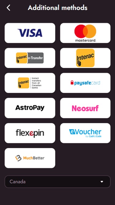 At the time of our visit, casino cashier included various online payment systems and traditional banking options such as payment cards, e-wallets such as Skrill and Neteller, Interac, SPEI...