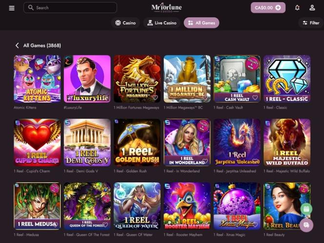 The casino’s gaming library comes with a rich selection of slot games. Some of the featured titles that you can try out at MrFortune are: Joker's Jewels, Booming Bananas, Royal Fruits MultiLines, Master Joker, Jumbo Joker, Booming Seven Deluxe, Classic Coins, 2x Points, Thunder Coins: Hold and Win, Joker’s Jewels Hot, Gold Gold Gold 5000, Inner Fire, Joker’s Jewels Wild, Burning Classics Royal Edition, Cashpot Strike 7s, Peppe’s Pepperoni Pizza Plaza, Buffalo Hold and Win Extreme 10,000, All-Star Fruits, Jewelling Diamonds, Book Of Camelot, Tropical Thunder…