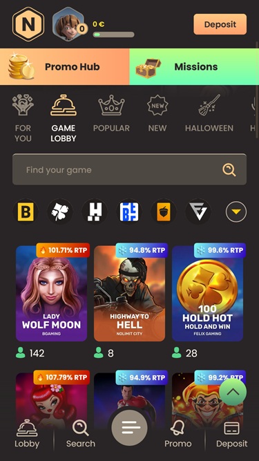 Organized into categories, the lobby is simple to browse. Games can be searched either by genre or by the studio, and by some specific features- Drops & Wins, and Bonus Buy.