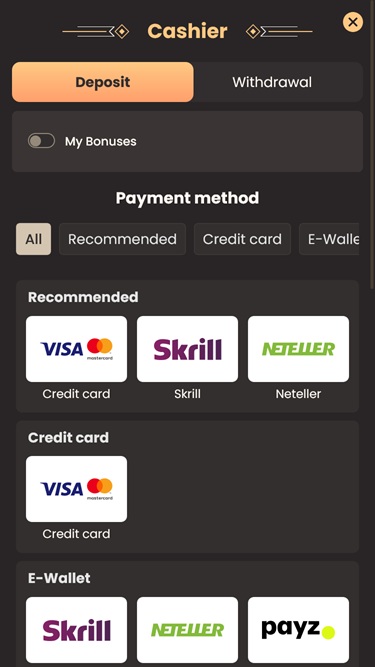 Slot games apart, the catalog accommodates other categories of games. There are multiple variants of Roulette, Blackjack, and Baccarat, both in 3D and live dealer versions. Let’s not forget to mention video poker and scratch cards, as well as a fine assortment of Bingo and Fast Games.