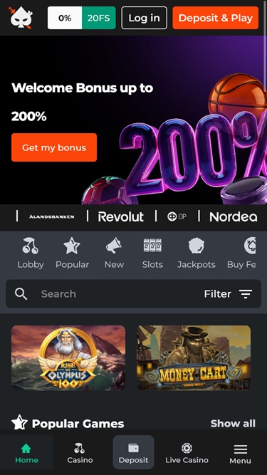 OKThe website design is awesome, it looks very professional and it is noticable that they have spent a lot of time making it. They have a large games library, from Microgaming to Play'n Go. I do believe this casino is legit. No registration needed? Wow that's easy, no documents needed...till a certain withdrawal amount.