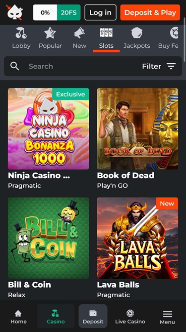 Ninja Casino has not earned endorsement from the Wizard of Odds.