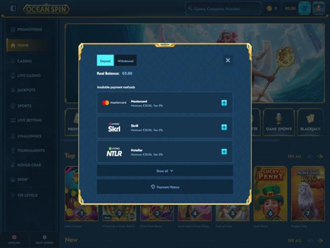 Offering a massive gaming selection filled with thousands of real money slots, live dealers, table games, and crash games, Ocean Spin Casino has become a popular hub for both modern casino players and sports bettors alike. The brand offers a hefty promotional plan featuring numerous bonuses and promotions, and players can manage funds using multiple payment methods, including cryptocurrencies.